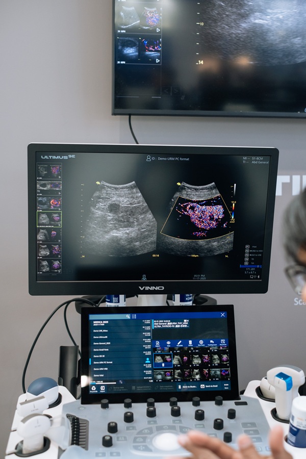 同时,智能化超声作为本次展示的核心亮点,正顺应智慧医疗发展浪潮加速落地。基于飞依诺智慧超声生态的持续拓展,其功能已深度赋能甲状腺、乳腺、肝脏、产筛等关键诊疗领域,实现病灶自动捕捉、量化分析与辅助决策,为精准诊断提供坚实支撑。