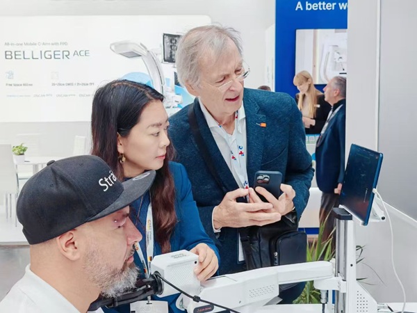 展会现场,众多专家对URM超分辨显微成像带来的微米级成像表示赞叹。自URM发布以来,已不断在国际领域释放潜能。在欧洲,飞依诺携手德国埃尔朗根大学医院等顶尖医学机构,将URM超分辨显微成像技术应用于成人肾移植诊疗的研究探索,可揭示移植肾脏微小血管的形态结构与血流动态,助力医者更早识别移植肾潜在病变或排斥反应,从源头守护患者术后康复进程。目前,超分辨显微成像已成为国际超声医学领域的研究热点,未来将为更多疾病诊疗难题带来突破。